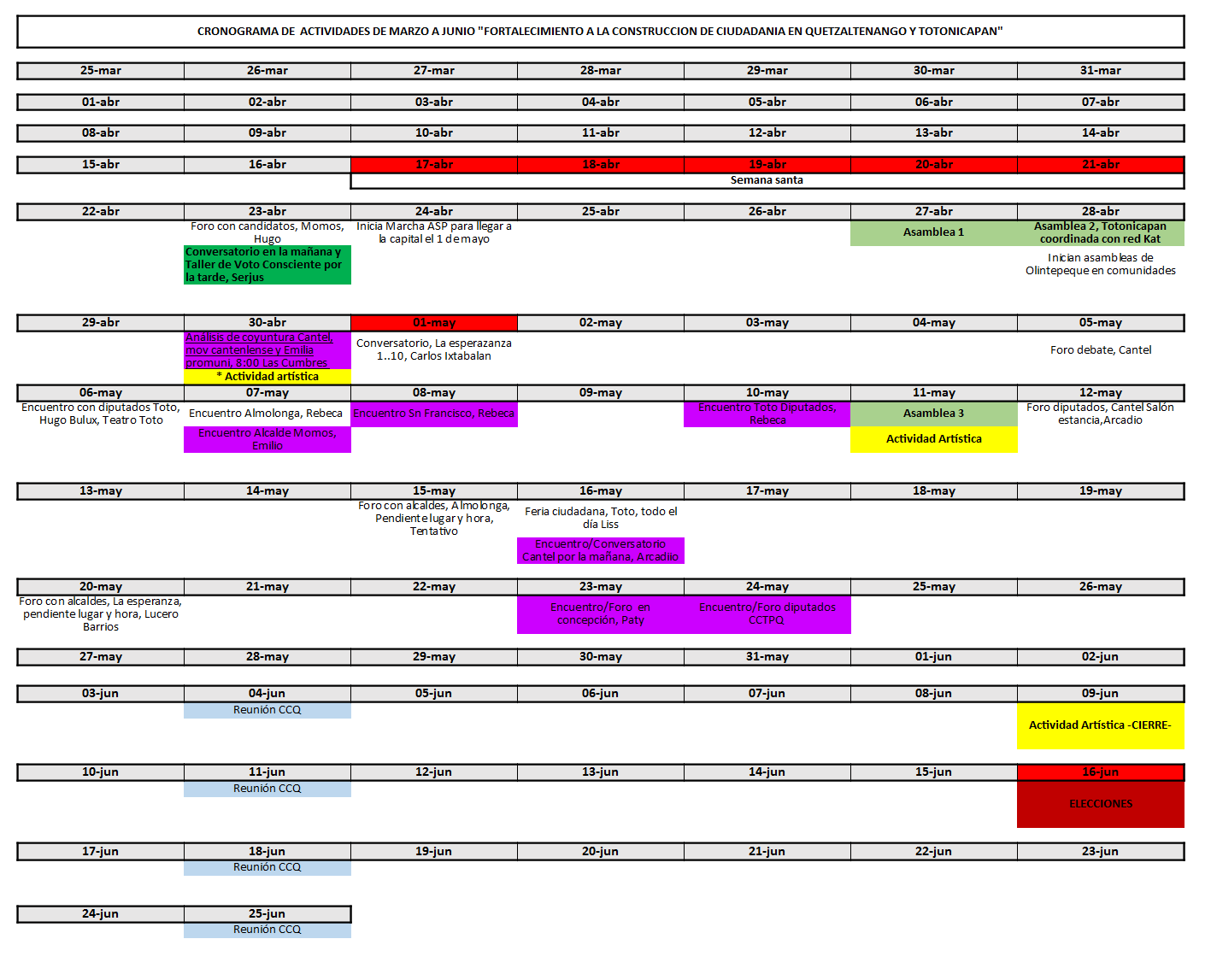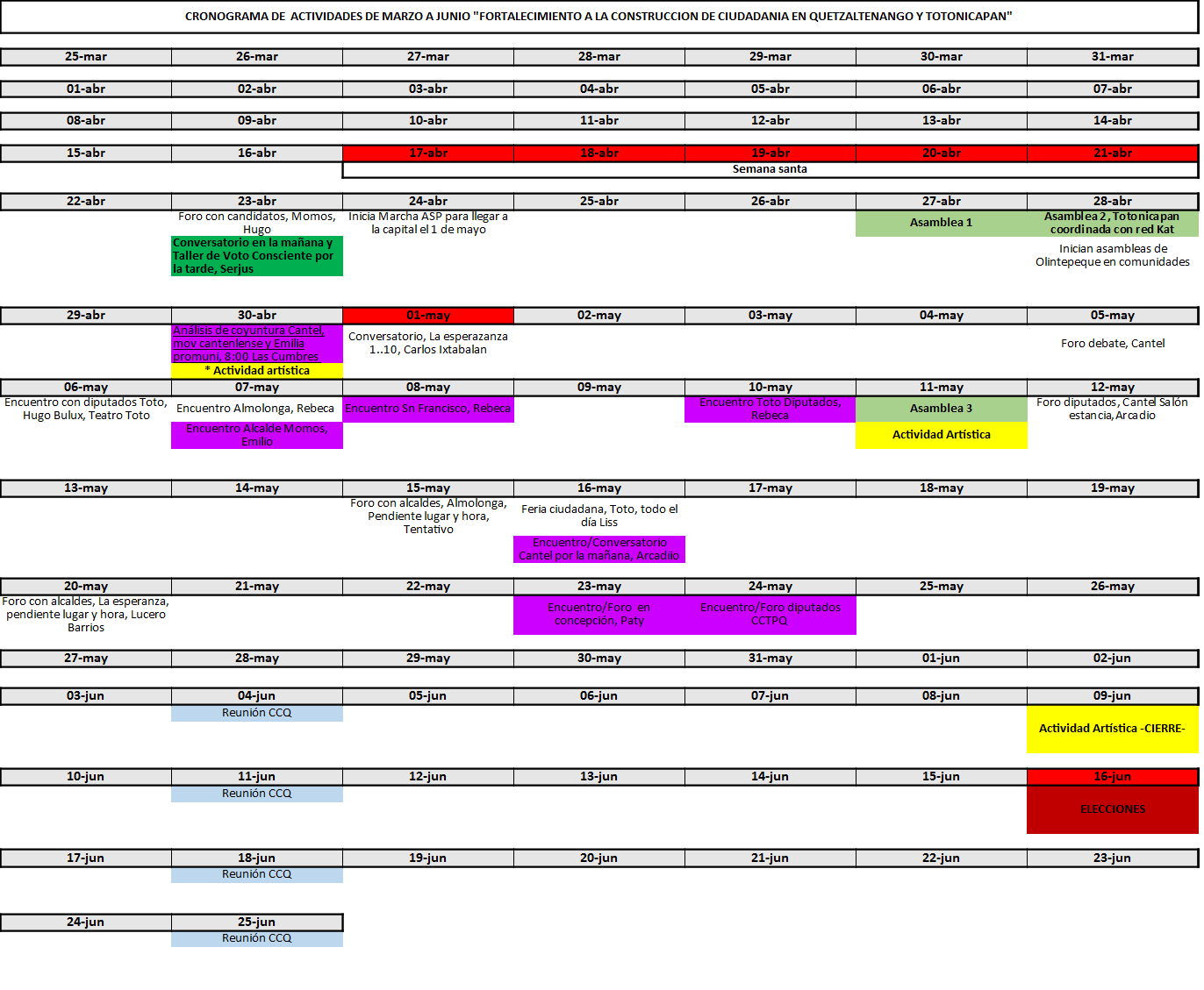 Espacio para comunicación, coordinación y divulgación de las actividades del proyecto del voto consciente en el marco de las elecciones del 2019